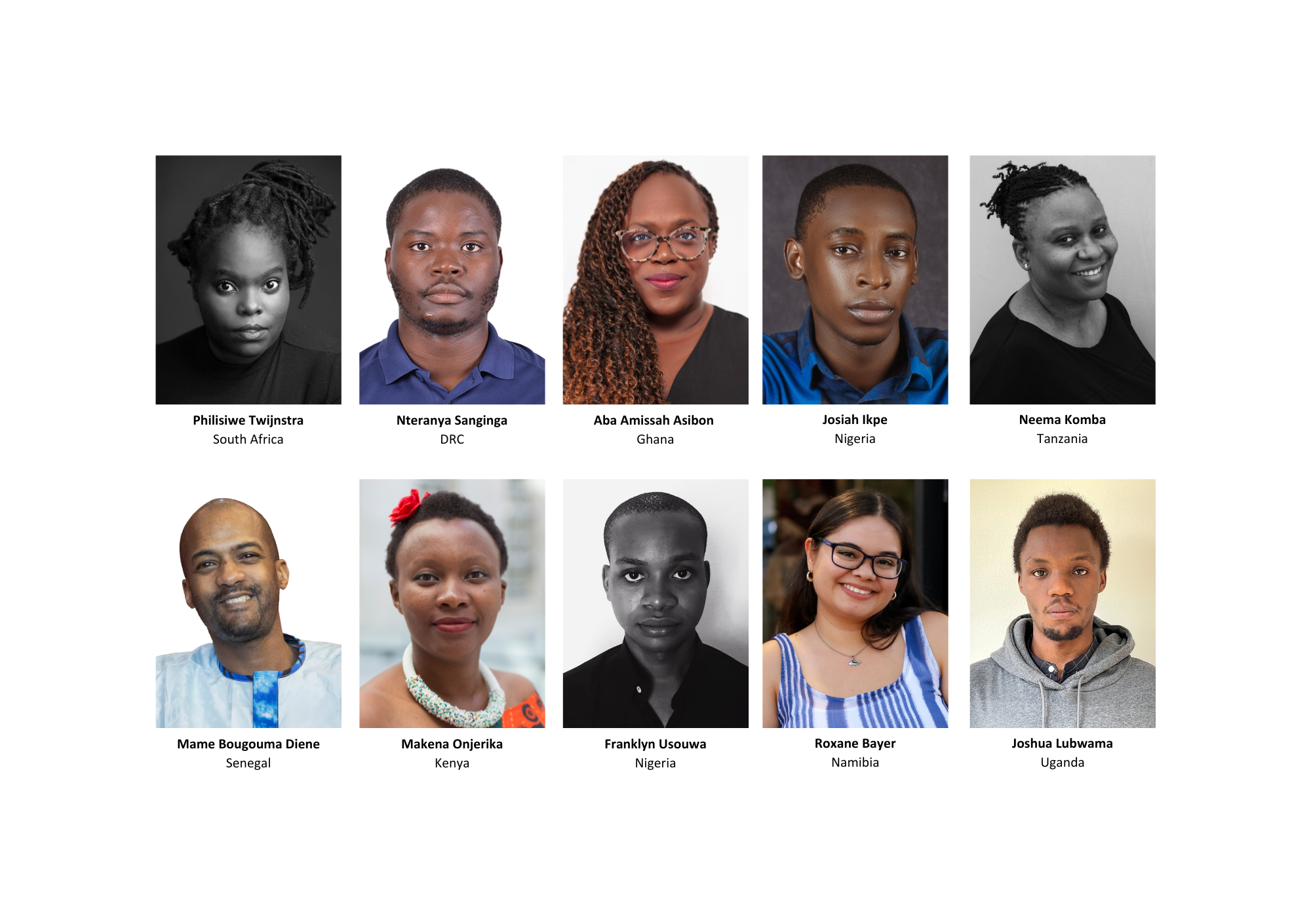 This year’s participants include 2018 winner Makena Onjerika (Kenya); 2023 co-winner Mame Bougouma Diene (Senegal); Josiah Ikpe (Nigeria); Aba Amissah Asibon (Ghana); Franklyn Usouwa (Nigeria); Joshua Lubwama (Uganda); Philisiwe Twijnstra (South Africa); Neema Komba (Tanzania); Roxane Bayer (Namibia); and Nteranya Sanginga (Democratic Republic of Congo).